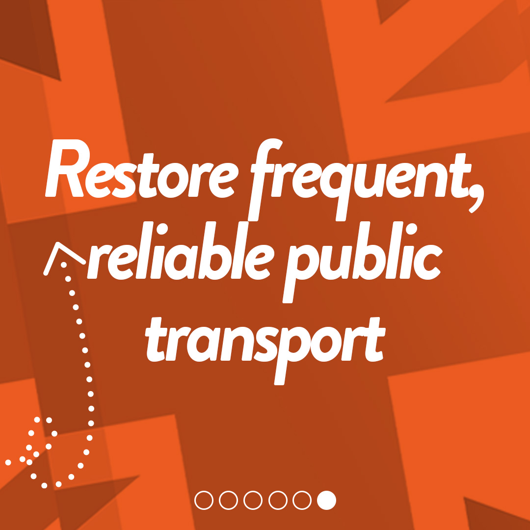 Labour will launch the biggest reform of buses in a generation, ending the Conservatives’ broken system, and handing power and control of routes, fares and services back to the communities who depend on them.